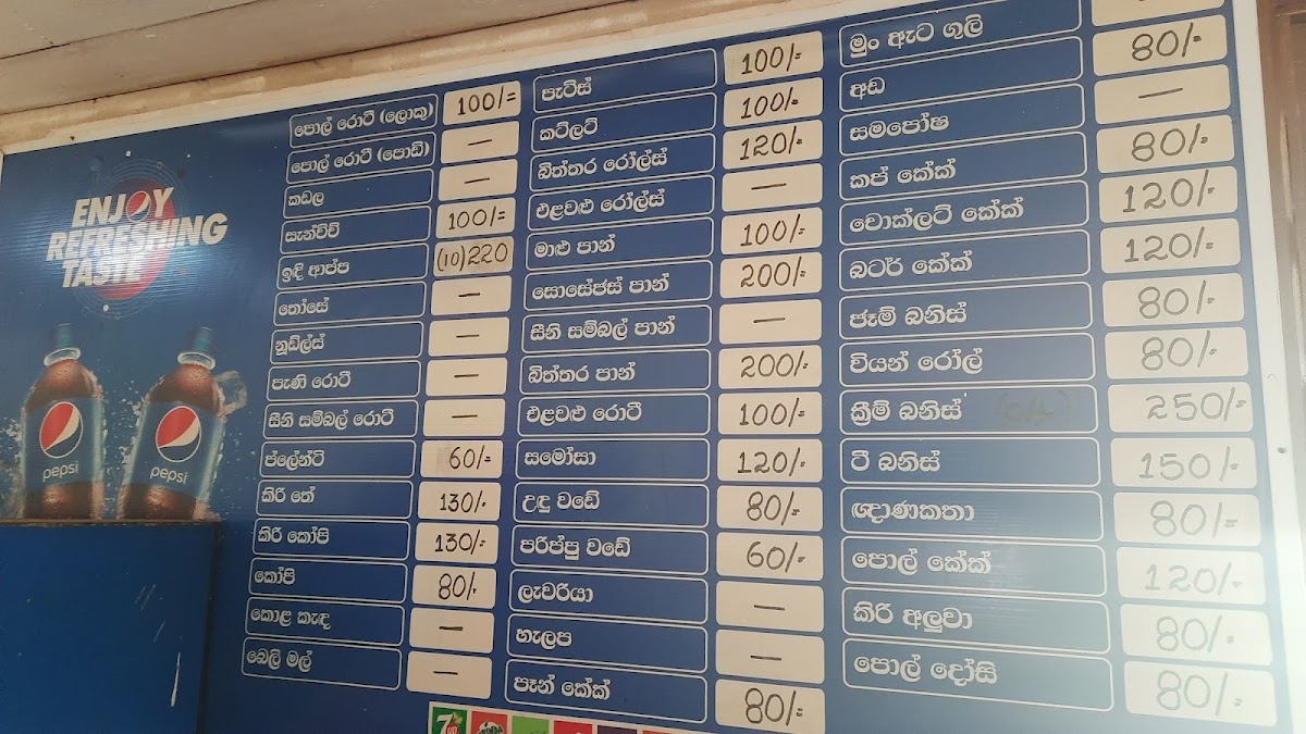 Horton Plains Cafeteria Menu